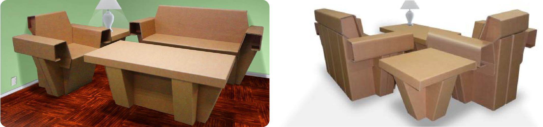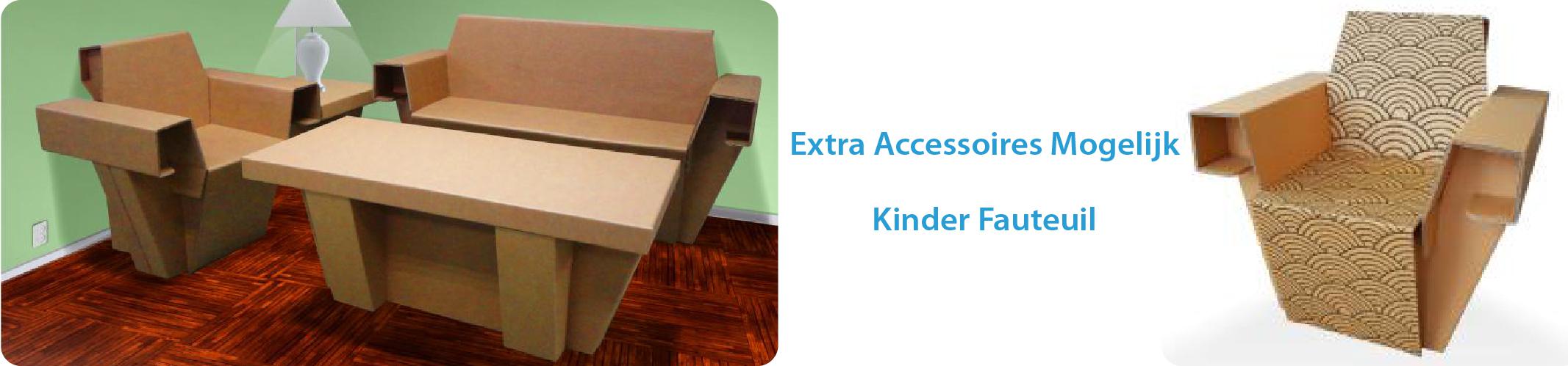 Wij bieden verschillende soorten kartonnen meubels aan. Zo bieden wij de complete loungeset met salontafel, bijzettafel, fauteuil en bank. Maar ook al deze producten los en nog meer. Naast de onderdelen van de loungeset, bieden wij ook een losse statafel en een losse kinder fauteuil, om de perfecte set voor u te kunnen samen stellen en een set samen te stellen wat het best bij uw doeleinden past.